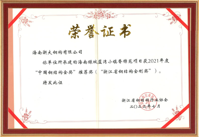 2021年度浙江省鋼結(jié)構(gòu)金剛獎